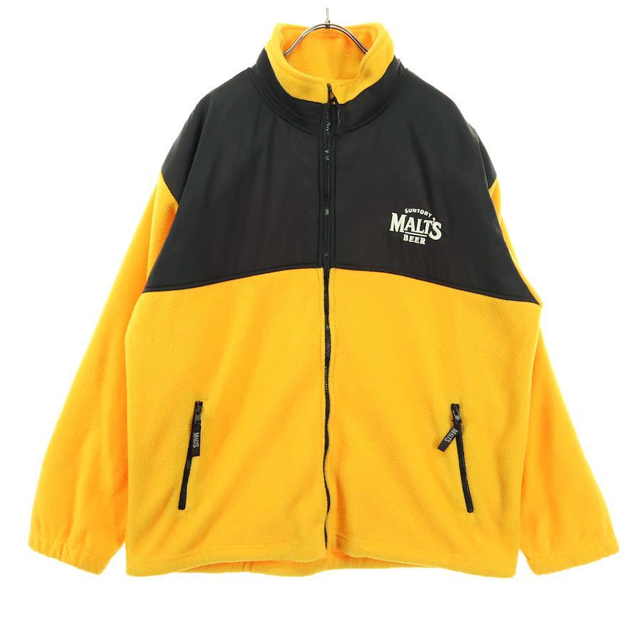 美品 サントリーモルツビール 企業物 バイカラー ツートンカラー 長袖 フリースジャケット L イエロー系 メンズ