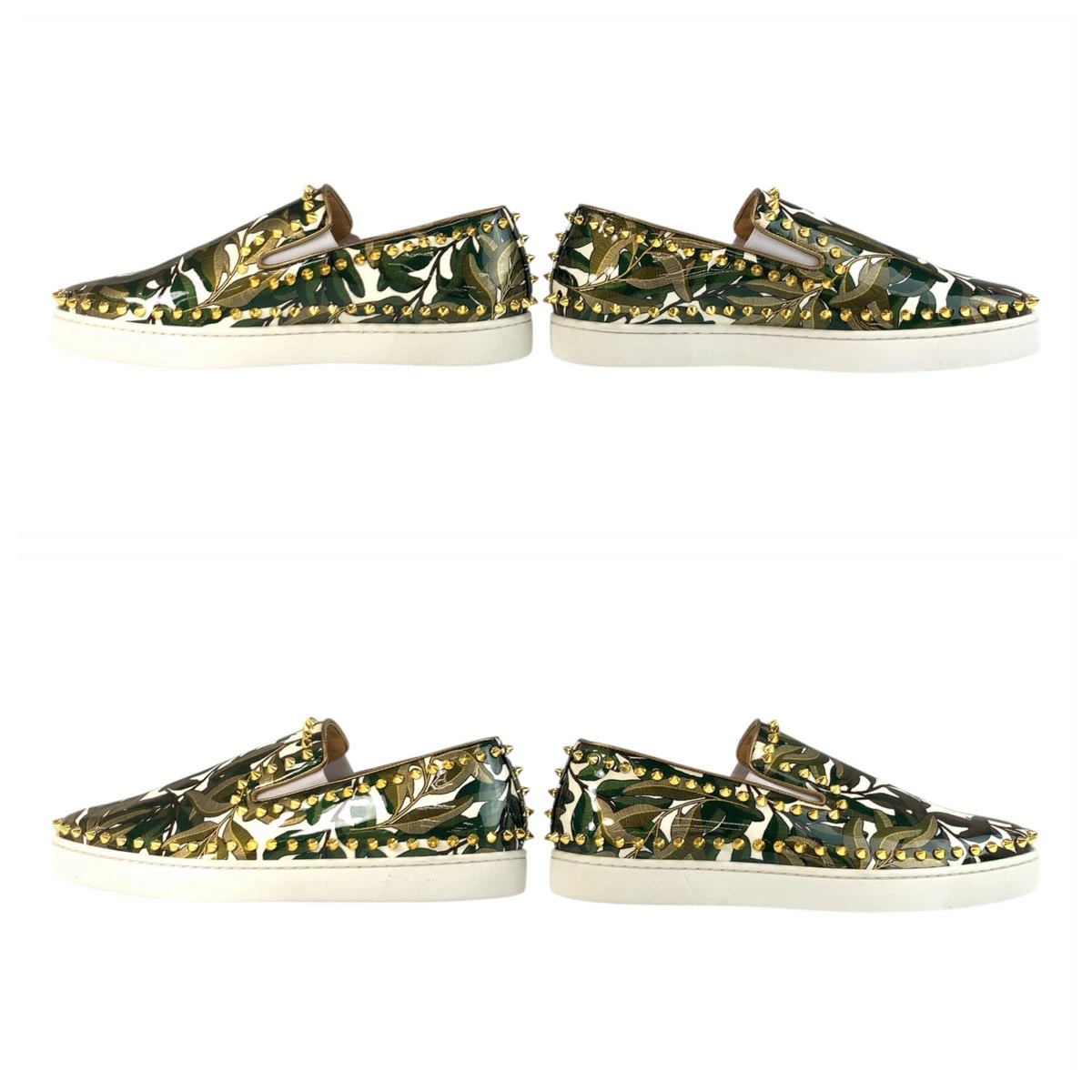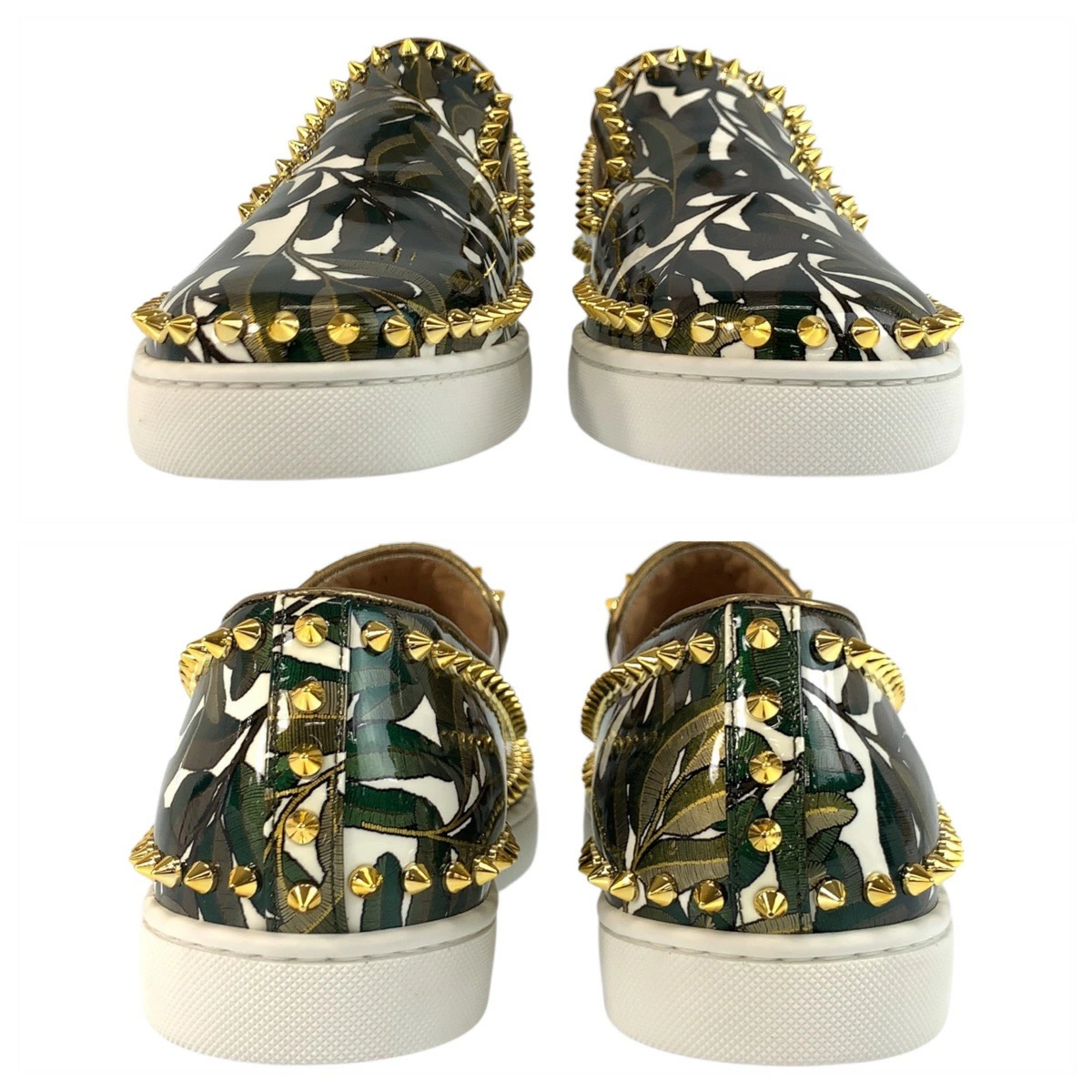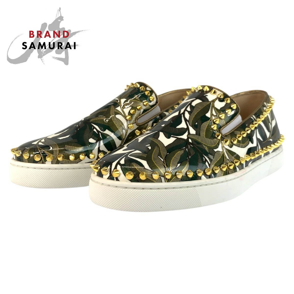 美品 Christian Louboutin クリスチャンルブタン ピックボート スタッズ サイズ表記41/26cm グリーン ゴールド パテントレザー スリッポン ローカットスニーカー メンズ 504490 【中古】
