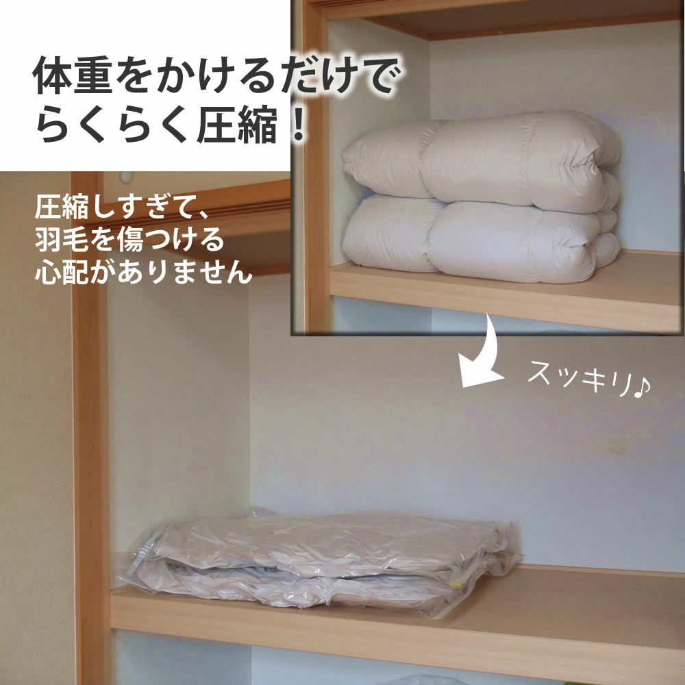 羽毛ふとんの圧縮パック1枚入 押入れ クローゼット 収納 省スペース コンパクト 布団 羽毛布団 掃除機不要 簡単 圧縮 圧縮袋 収納袋 衣替え 丈夫 日本製