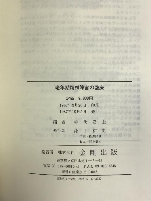 老年期精神障害の臨床 金剛出版 室伏君士