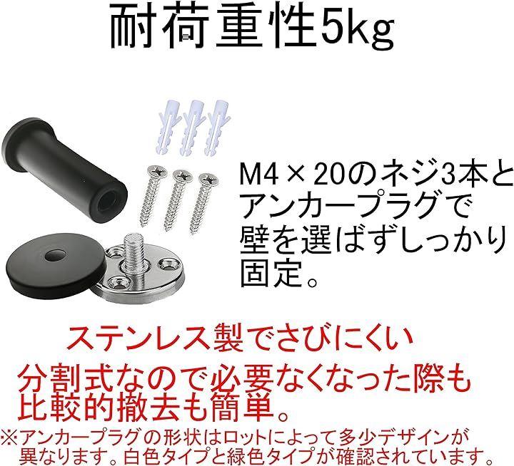 ・耐荷重性5Kgは取り付け箇所が頑丈な木材や石材の場合のみです。