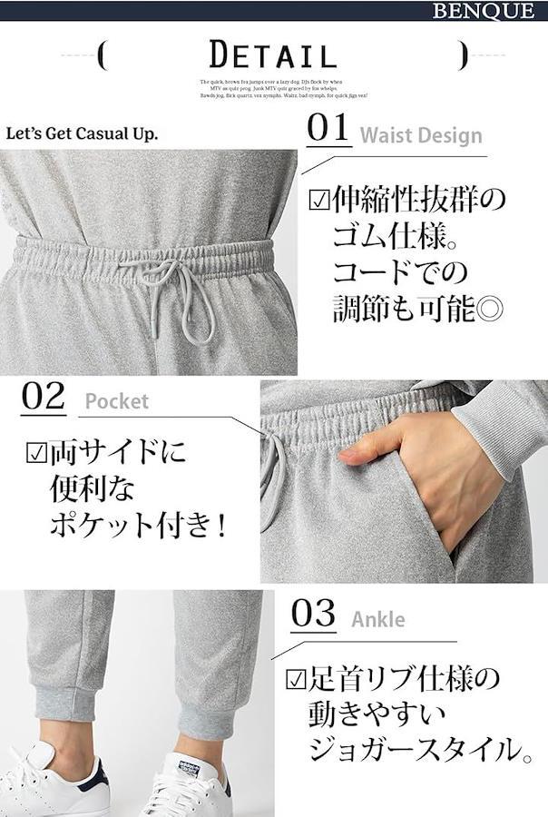 ボトムスのウエストは伸縮性のあるゴムを使用しているので、快適なフィット感を提供します。