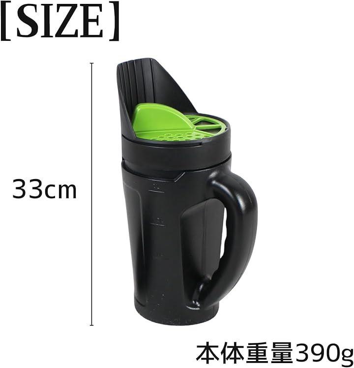 全長約33cm、本体重量390g、容量約2.5Lの大容量で、握りやすいグリップを採用。