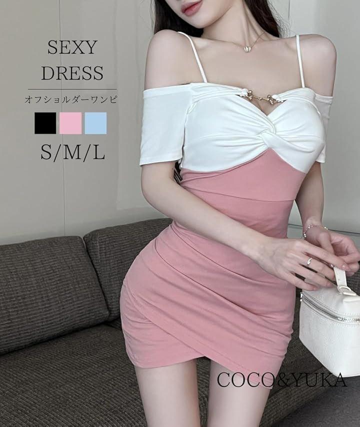 セクシーなオフショルで、谷間がさりげなく盛れてかわいいデザインのワンピースです。