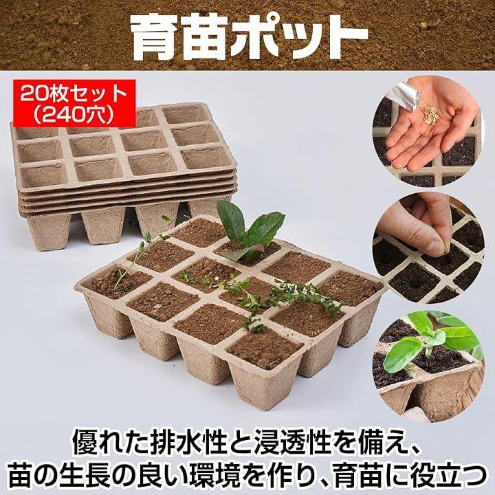 大量セット、育苗ポット12ピースシートx20枚=240穴、長さ16x奥行12x高さ5cm、生分解ペーパー *底穴なし *モニターの環境により、色の見え方に若干差が生じる場合がございます。