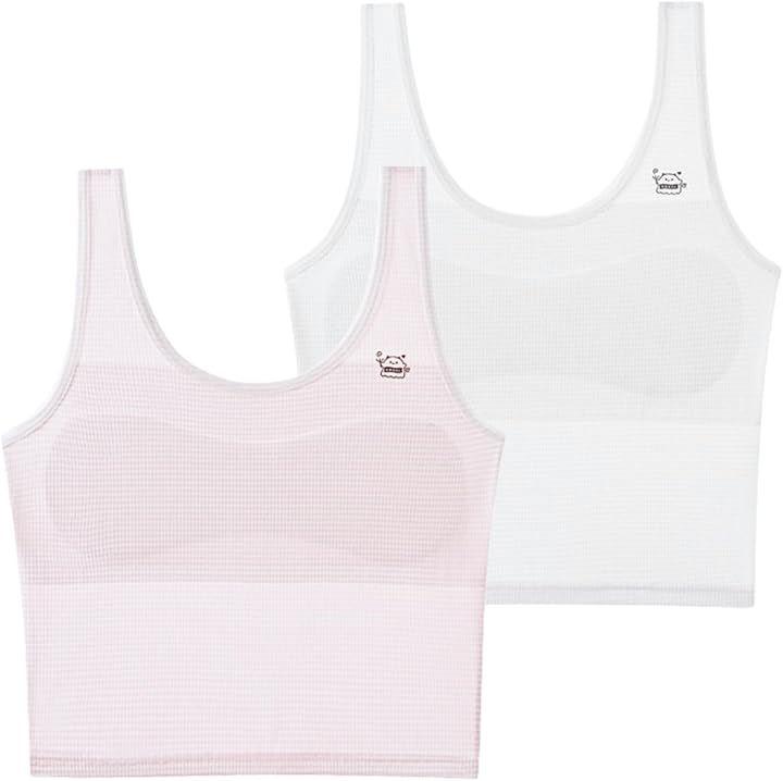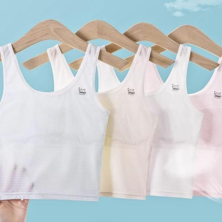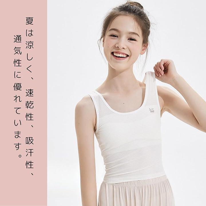成長期の女の子の体にやさしい二重仕立ての胸元デザイン。