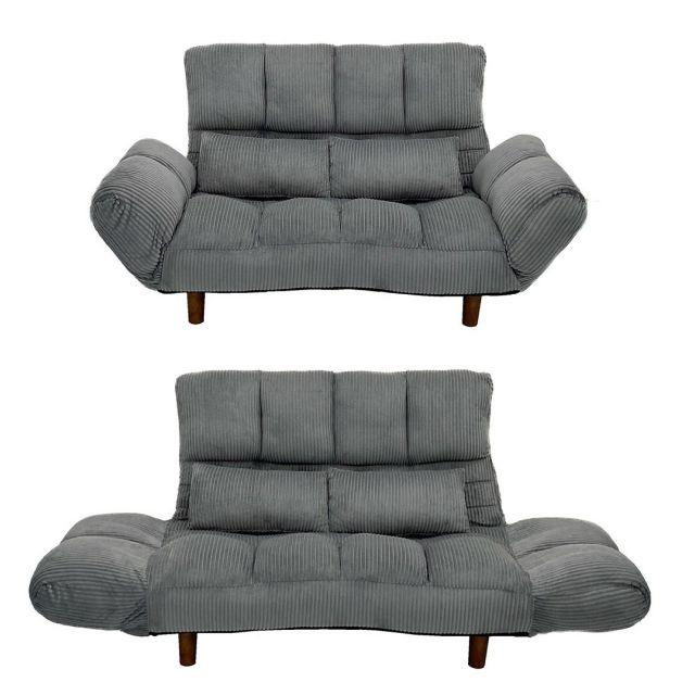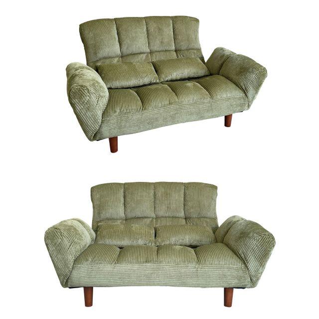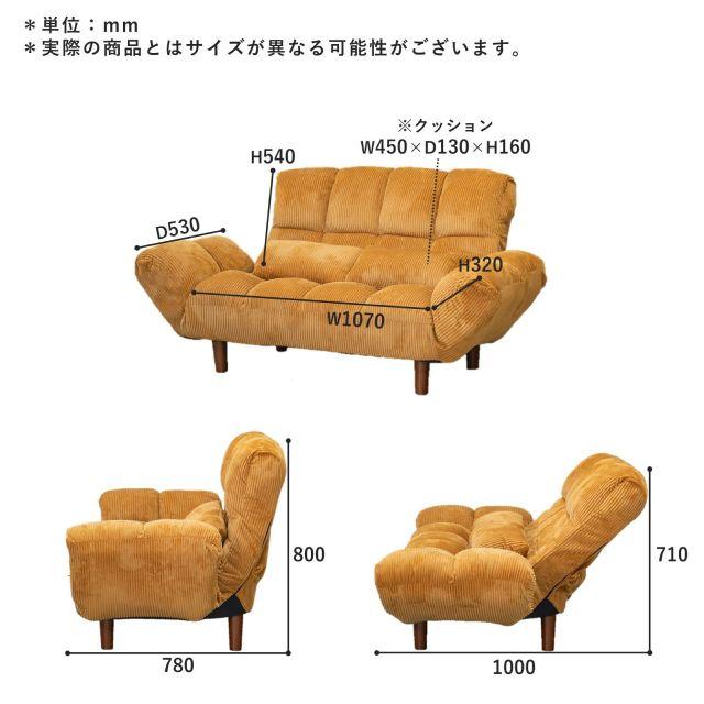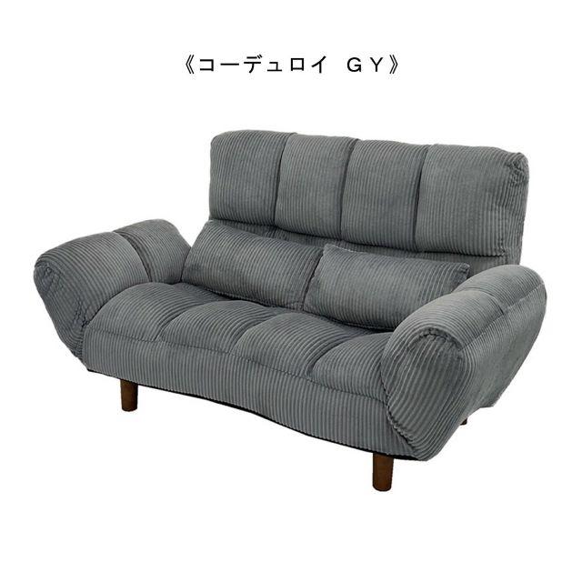 脚の着脱が可能なコンパクト2Pソファ <カウチソファー ファクトIII・IV コーデュロイ> 3色 マスタード グレイ カーキ ローソファー使用可 リクライニング機能 年中快適 柔らかな手触り