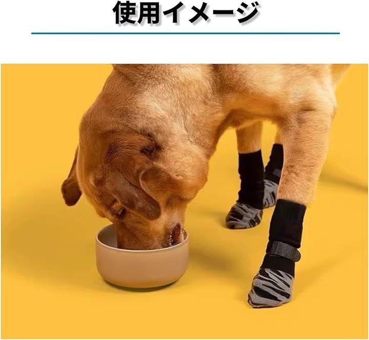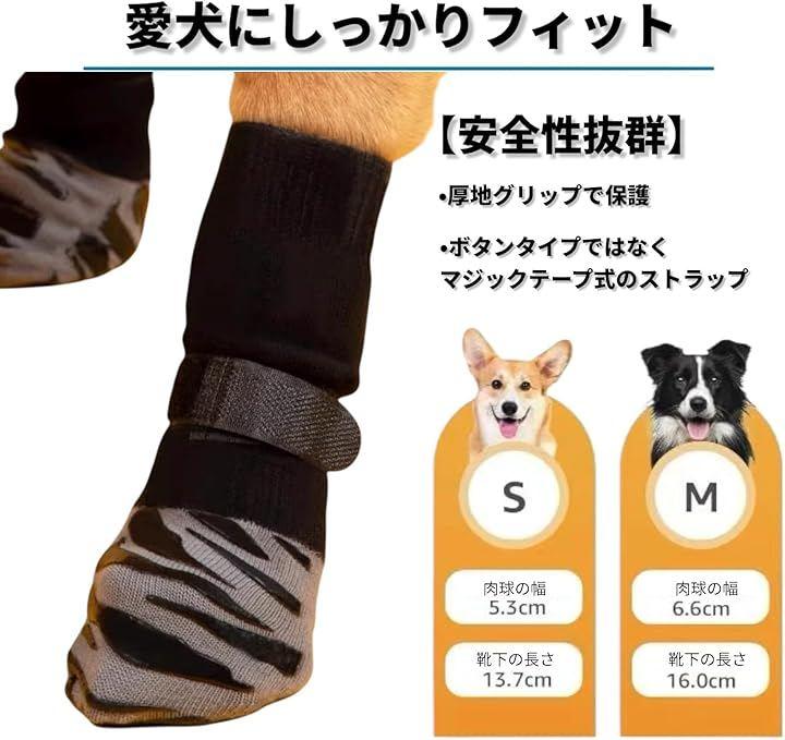 滑り止め+脱げないテープ仕様で、小型犬や中型犬の足をしっかり保護。