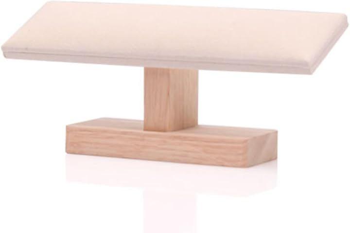 「高級感漂う天然木製スタンド」美しい天然木とスエード調クッションを組み合わせ、腕時計やアクセサリーを上品にディスプレイできます。