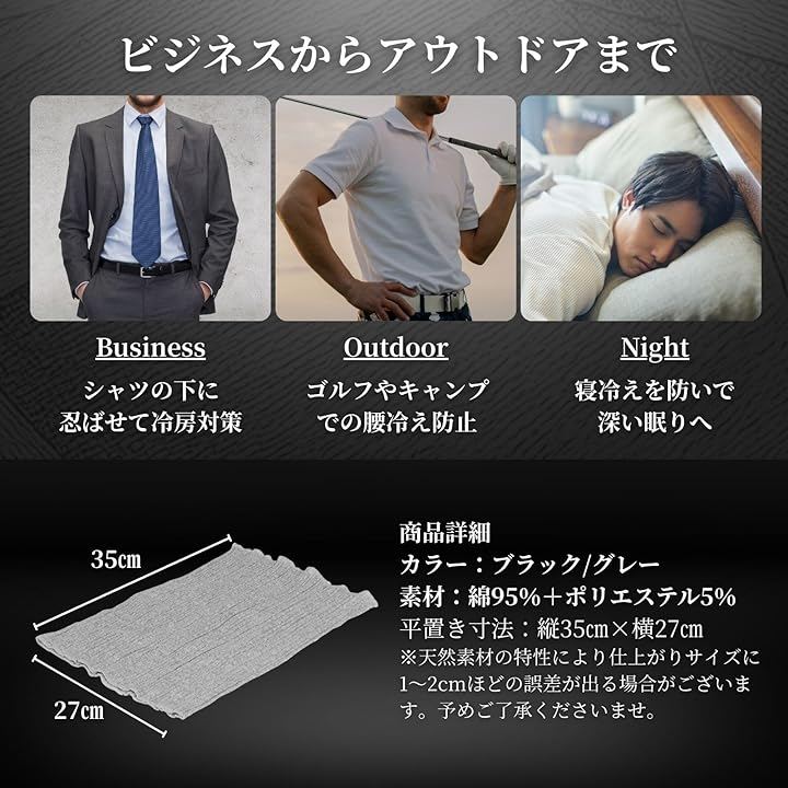 「天然コットン」おやすみ時の冷え予防、通勤・通学、オフィスの冷房対策、屋外の作業時やウィンタースポーツ時にもお腹を暖かく冷えを防いで快適にお過ごしいただけます。