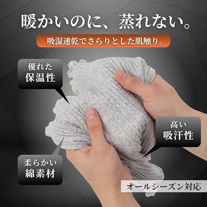 「ふんわりコットン」立体感のある生地加工で、空気をたっぷり含み、保温・保湿性が高く、蒸れを防いで暖かさを保ちます。