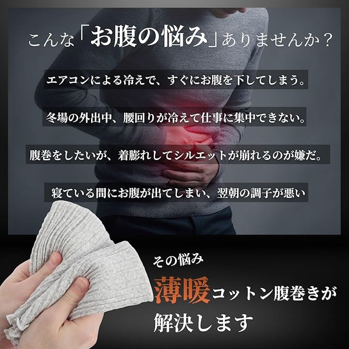 「オールシーズン」薄手の腹巻きは冬はもちろん、夏のエアコン冷えやお休み時のおなかの冷え予防としても最適です。