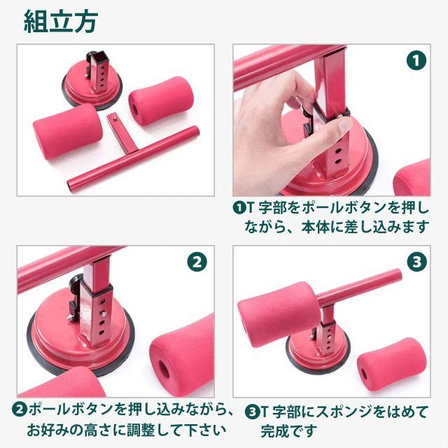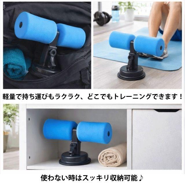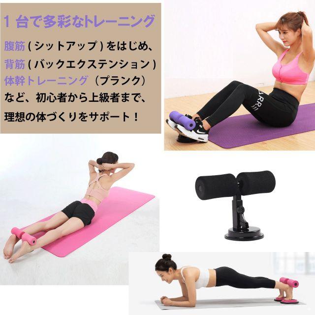 自宅で簡単にセルフ腹筋・体幹トレーニングができる、吸盤式の腹筋トレーニング機器(シットアップバー)です。レバーを押し下げるだけで吸盤が床に強力吸着!真空構造でぴったりと密着するので、トレーニング中でもズレにくく、安心・安全。一人でも足が浮くことなく、手軽に本格腹筋ができます!体格やトレーニング内容に合わせて3段階の高さ調整が可能。自分にぴったりのポジションで効率よく鍛えられます。これ一台で腹筋(シットアップ)をはじめ、背筋(バックエクステンション)、体幹トレーニング(プランク)など多彩なトレーニングができ、初心者から上級者まで理想の体づくりをサポートします!軽量で持ち運びもらくらく、どこでもトレーニングができ、使わない時はスッキリ収納可能。ブレない、ズレない、理想の体づくりを足元からしっかり支えます◎