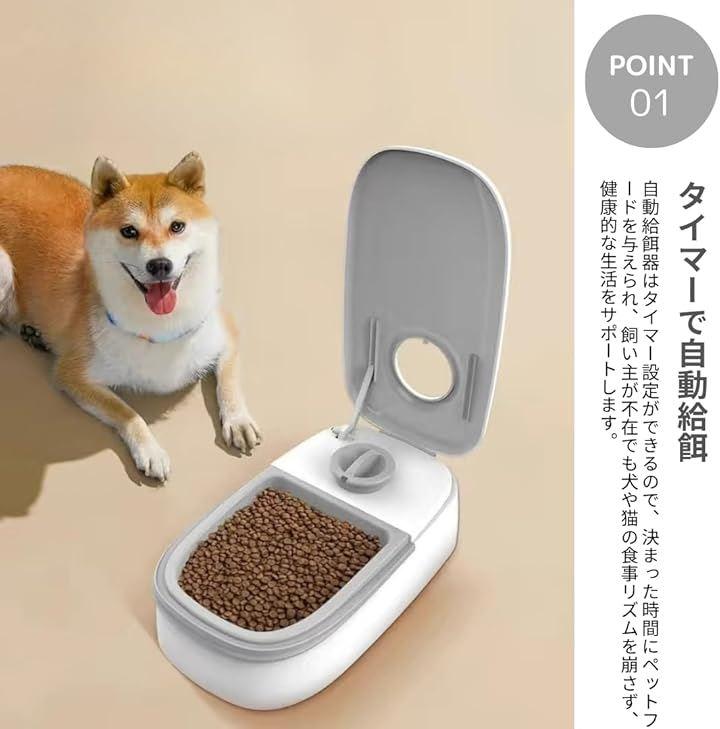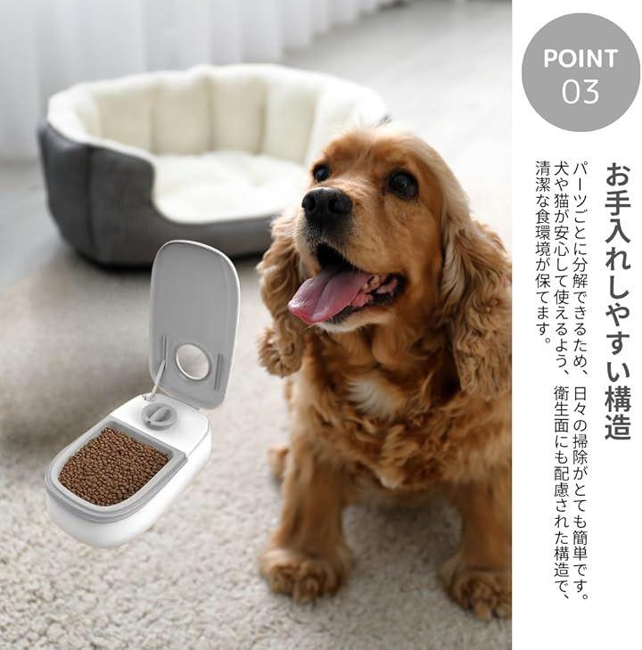 「タイマーで自動給餌」自動給餌器はタイマー設定ができるので、決まった時間にペットフードを与えられ、飼い主が不在でも犬や猫の食事リズムを崩さず、健康的な生活をサポートします。