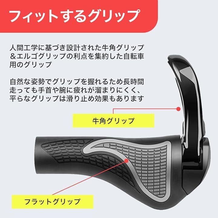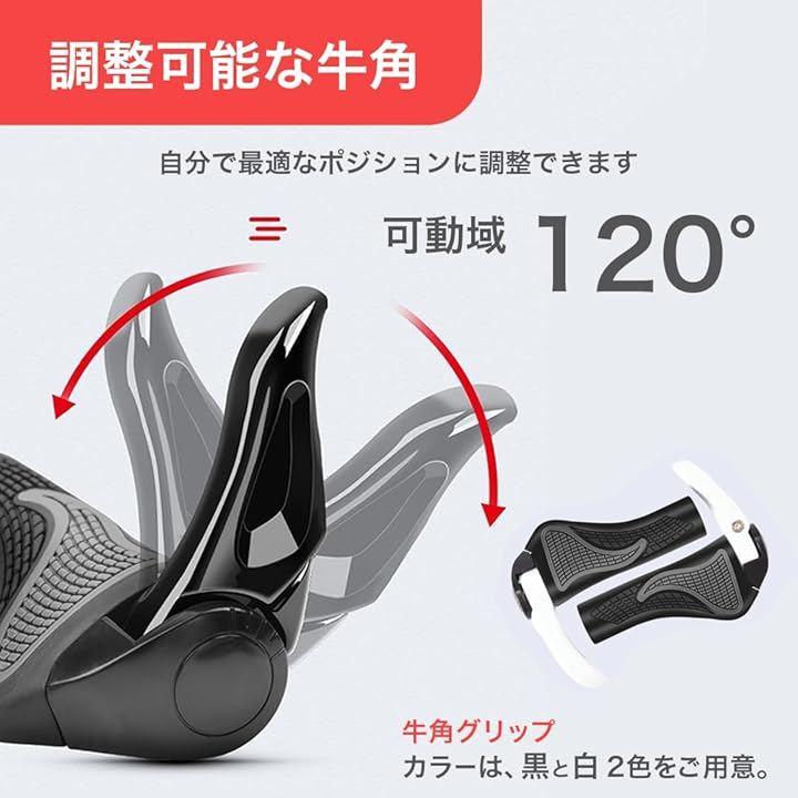 「一般的なハンドルに対応」このグリップには牛角と呼ばれるパーツが付いており、これにより上り坂や急な加速時に力を最大限に活用することが可能です。