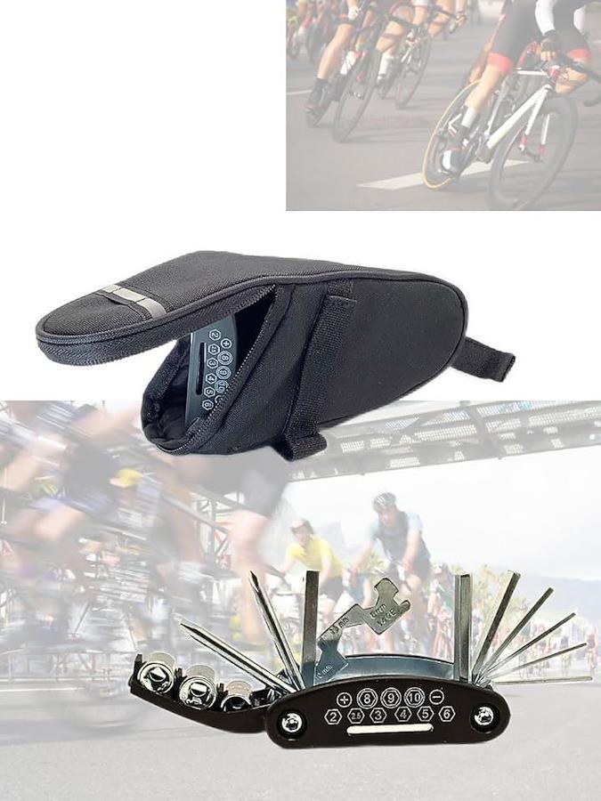 自転車の修理、整備、点検、メンテナンスなどのとっさのトラブルに対処できる工具セット。