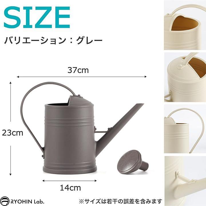 「商品内容」じょうろ1個、カラーバリエーション:ブラック・クリーム・イエロー・ホワイト・グレー・ダークグリーン、容量:2L、サイズ(約):注ぎ口含む幅37cm・底部直径14cm・高23cm