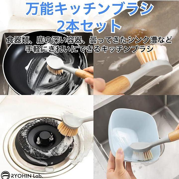 「キッチンブラシ2本セット」お茶碗などの食器類、底の深い容器、鍋・フライパンなどの調理器具、曇ってきたシンク漕など手軽にきれいにできるキッチンブラシです。
