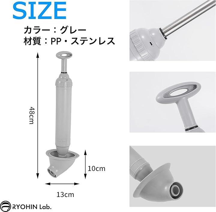 「商品内容」パイプクリーナー(本体)x1点 ラバーカップx1点、サイズ(約):48x13x10cm、カラーバリエーション:グレー・グリーン・ピンク