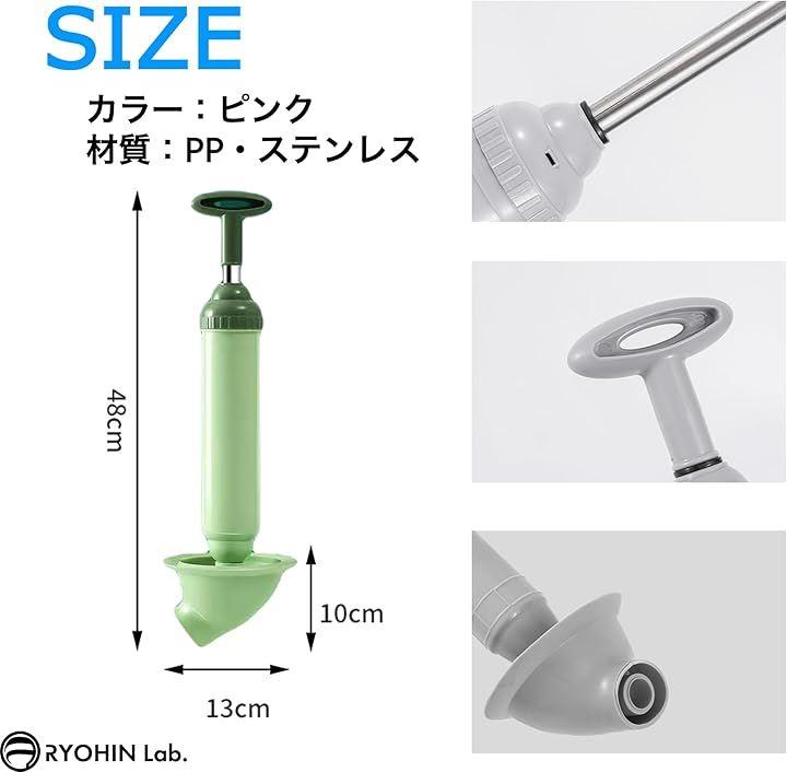 「商品内容」パイプクリーナー(本体)x1点 ラバーカップx1点、サイズ(約):48x13x10cm、カラーバリエーション:グレー・グリーン・ピンク