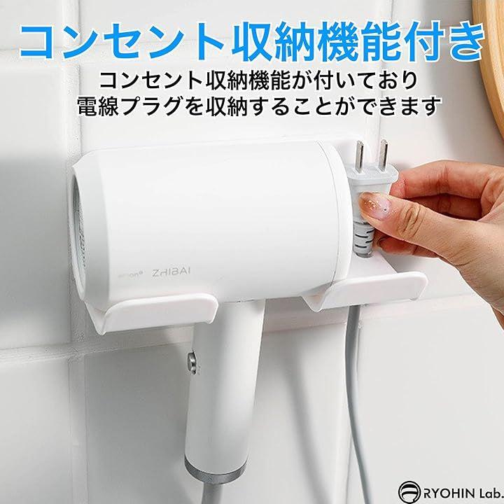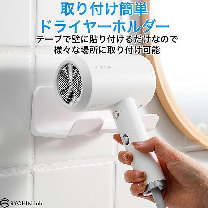「取り付け簡単ドライヤーホルダー」壁に穴を開ける必要はなく、テープをはがして壁に貼り付けるだけなので様々な場所に取り付け可能です。