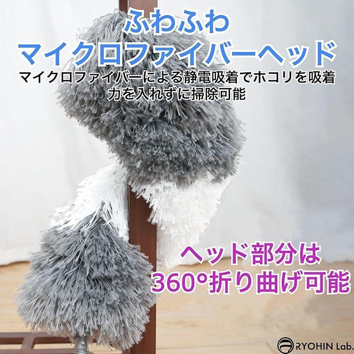 「ふわふわマイクロファイバーヘッド」ヘッド部分は360°自由に折り曲げることができ、マイクロファイバーによる静電吸着でホコリを吸着してくれますので、力を入れずに掃除できます。