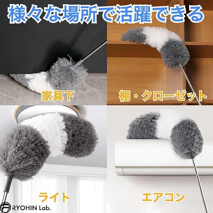 「様々な場所で活躍できる」タンスやクローゼットの上、冷蔵庫の上部分、カーテンレール、パソコン、天井、ライト、窓・サッシ、エアコン、車内などのお掃除に大変便利です。