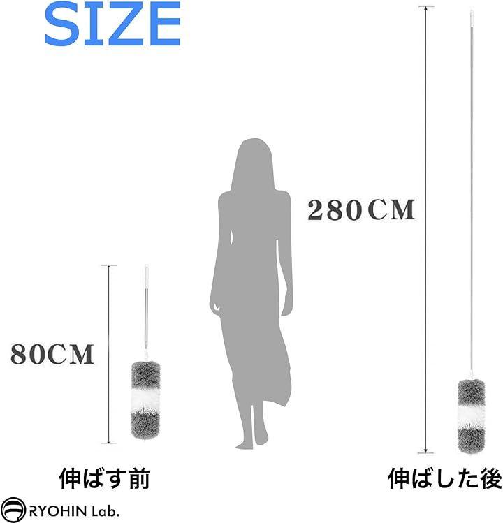 「届きにくい部分の掃除に便利」柄の長さは約80cm~280cmまで伸縮可能。
