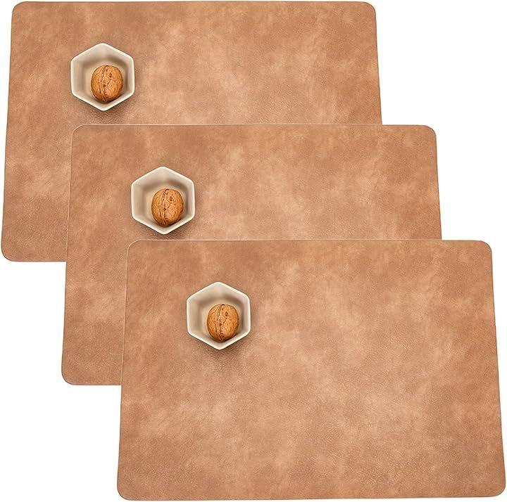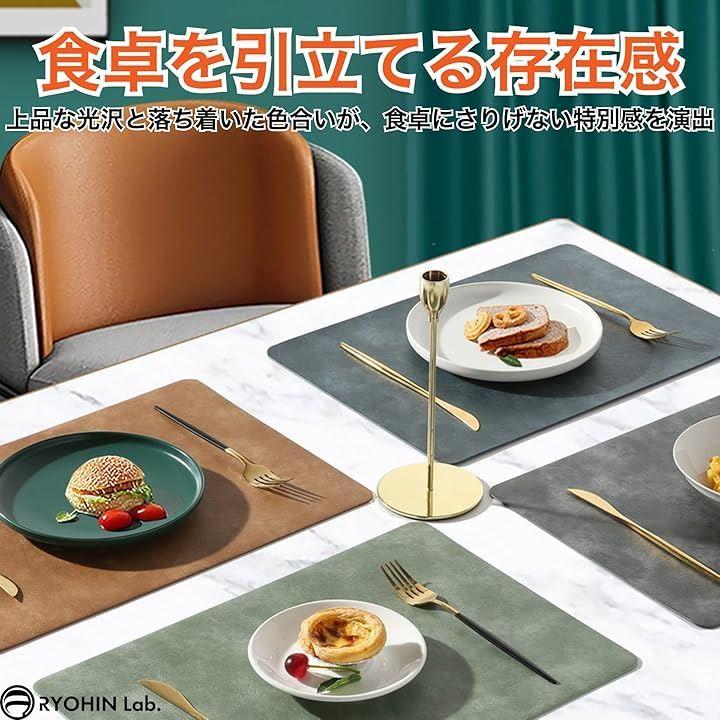 「商品内容」数量バリエーション:ランチョンマット2枚セット・ランチョンマット3枚セット、サイズ:約43cmx30cmx0.2cm、カラーバリエーション:7種類(ダークブラウン・ブルー・グレー・ブラック・ピンク・ライトブラウン・グリーン)、重量:145g/枚、素材:PUレザー、耐熱温度:上限100℃