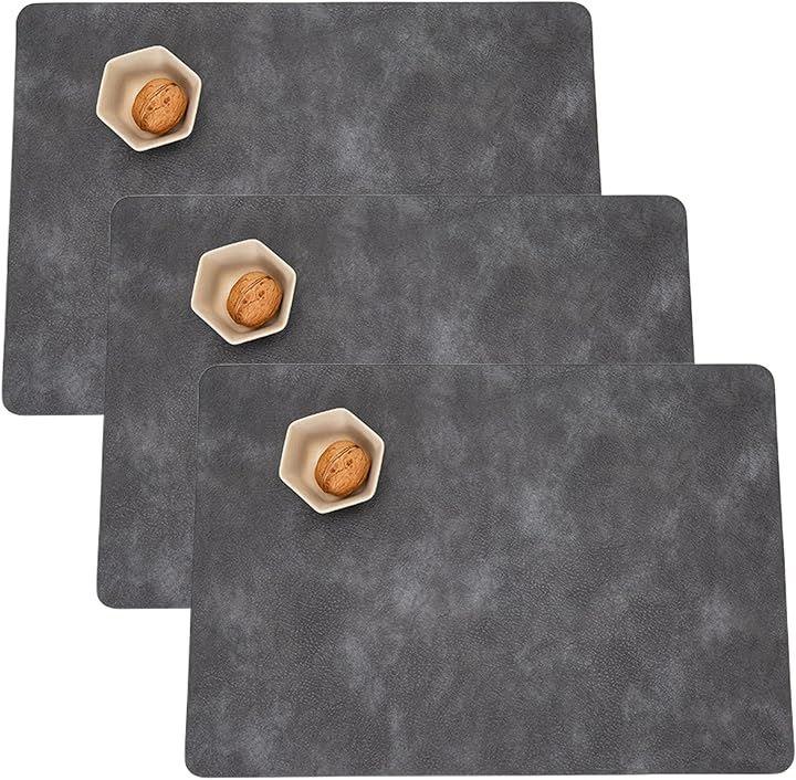 「商品内容」数量バリエーション:ランチョンマット2枚セット・ランチョンマット3枚セット、サイズ:約43cmx30cmx0.2cm、カラーバリエーション:7種類(ダークブラウン・ブルー・グレー・ブラック・ピンク・ライトブラウン・グリーン)、重量:145g/枚、素材:PUレザー、耐熱温度:上限100℃