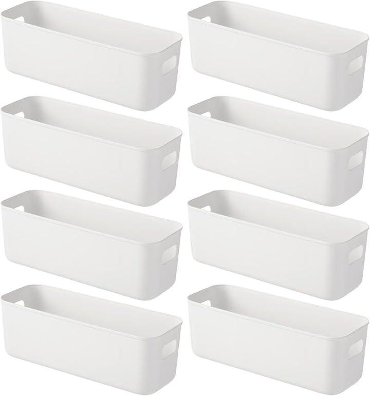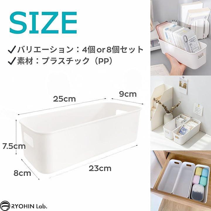 「商品内容」収納ボックス8個セット・4個セット、サイズ(約):25x9x7.5cm、色:ホワイト、材質:ポリプロピレン