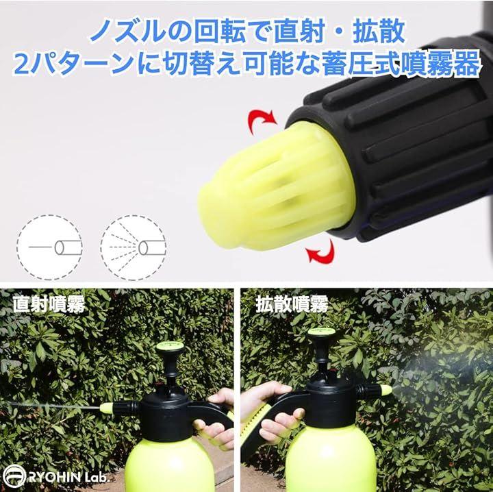先端部のノズルの回転で直射、拡散噴霧の2パターンに切り替えが出来ます。