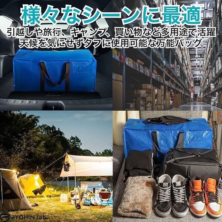 「様々なシーンに最適」引越しや旅行、キャンプ、買い物など多用途で活躍し、アウトドアでも天候を気にせずタフに使用可能なバッグです。