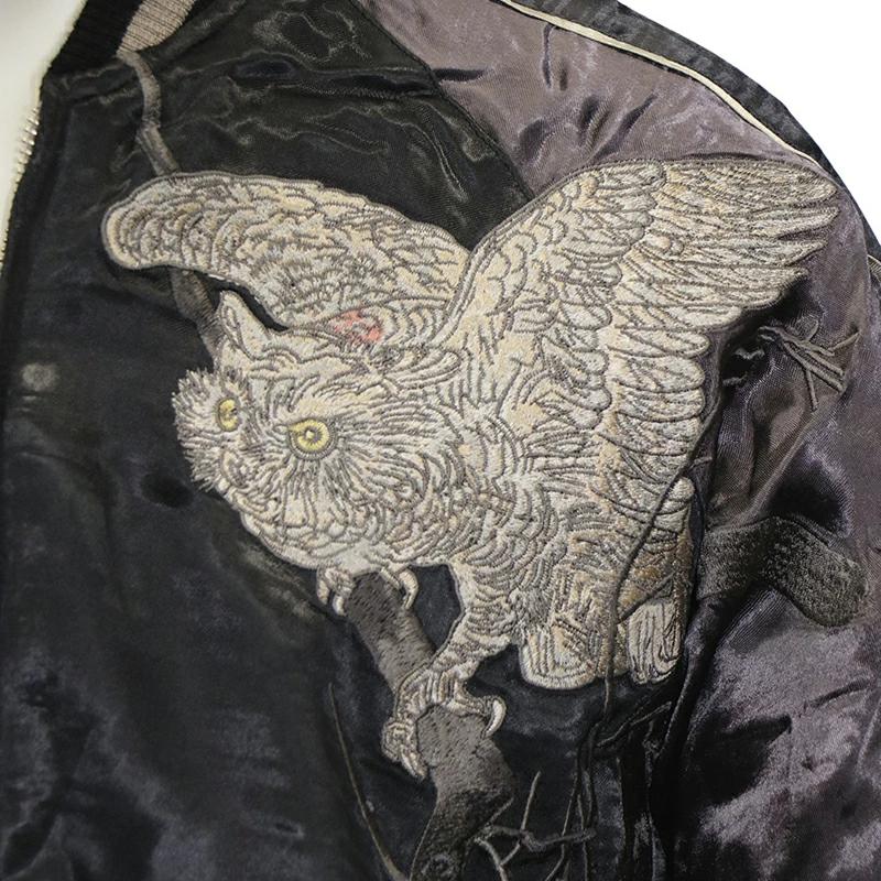 白木兎 シロ ミミズク 柄 和柄スカジャンです。