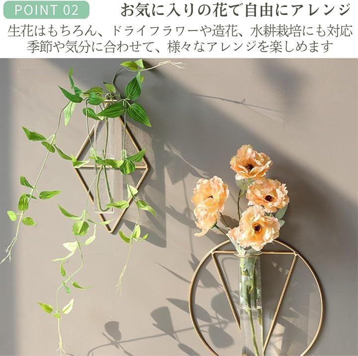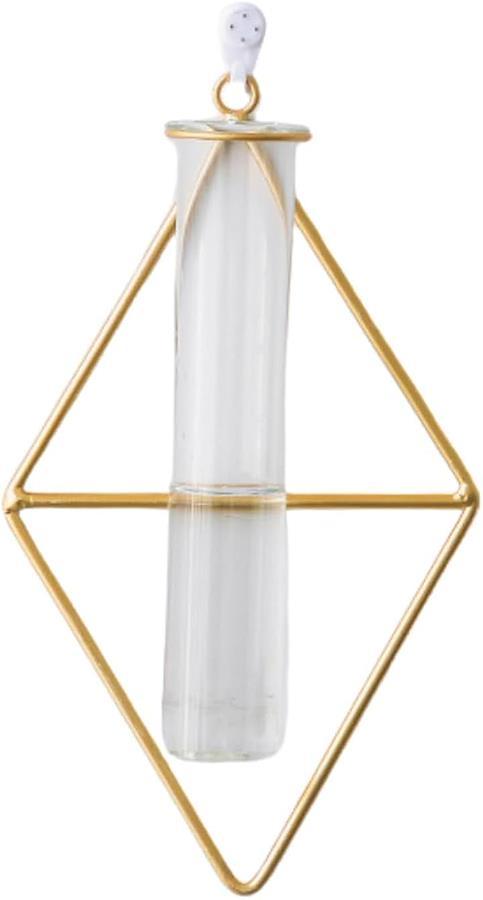 「商品詳細」商品タイプ:サークル/スクエア/トライアングル サイズ:15cmx26cm 試験管サイズ:口径5cm x 高さ20cm 重量:約190g カラー:ゴールド *植物・フックは付属しておりません。