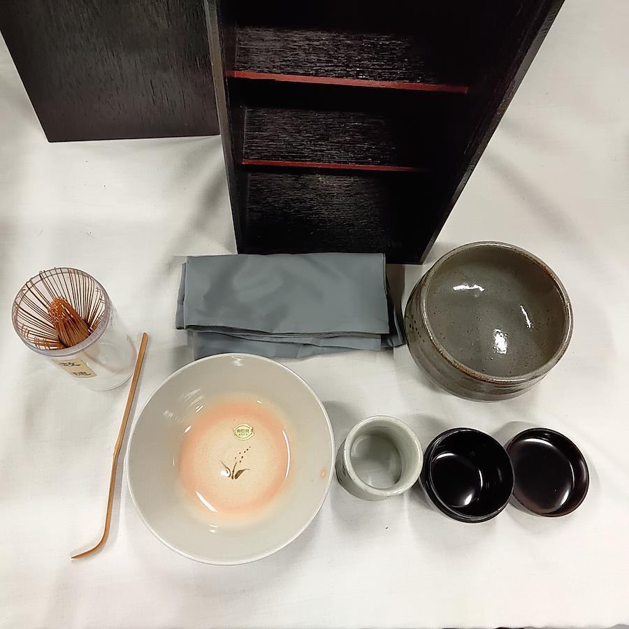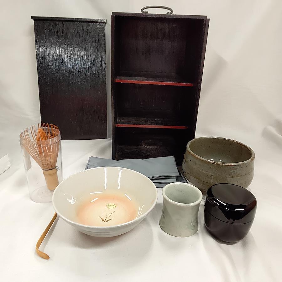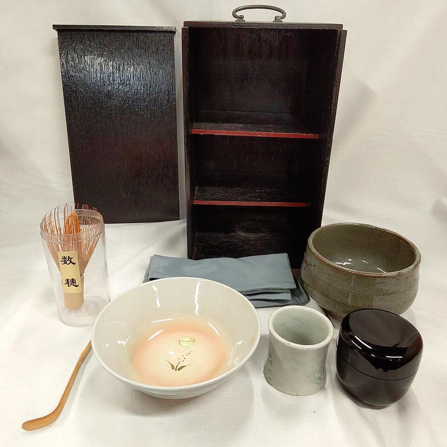 茶道具一式 抹茶茶碗 茶しゃく 茶せん ふくさ(正絹) なつめ 夏用抹茶茶碗 蓋置