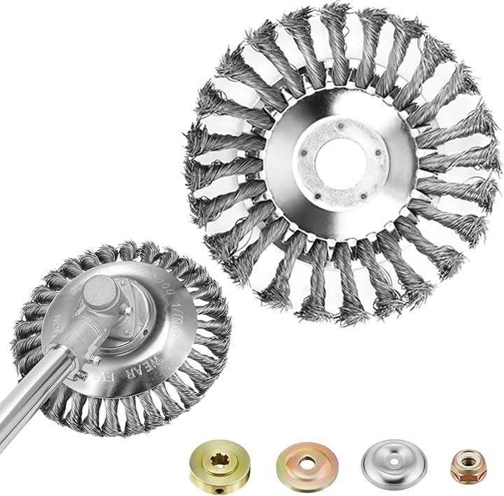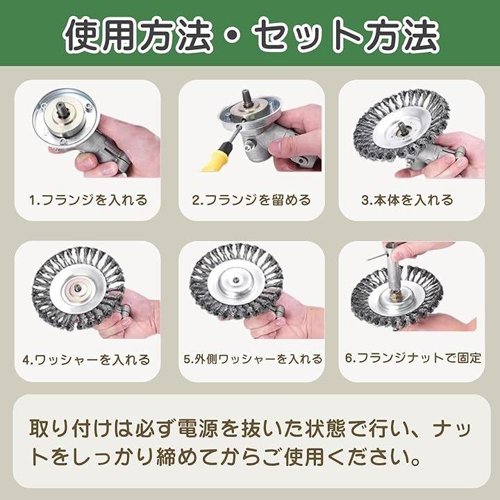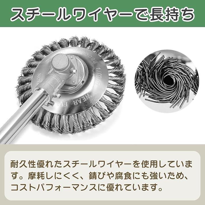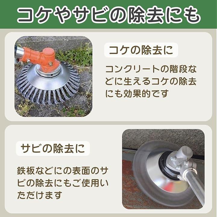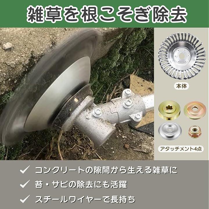 「雑草を根こそぎ除去」草刈機に取り付け、頑固な雑草などをかき取るワイヤーブラシです。
