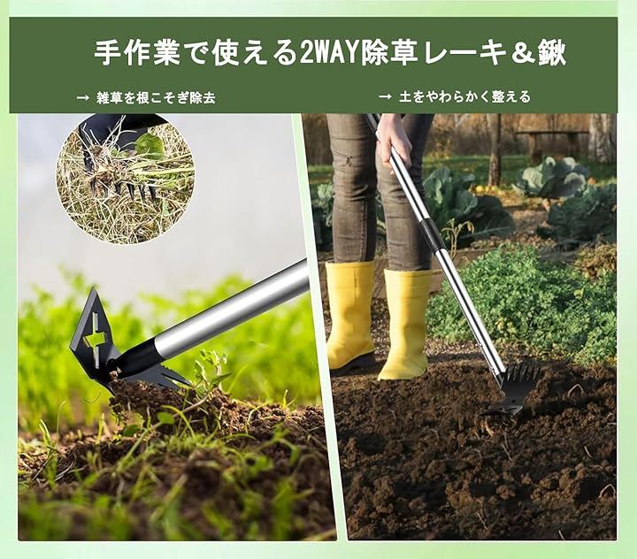 「雑草取り器具」や「草取り レーキ」「草刈りかま」としても使用可能で、根こそぎ雑草を除去できます。