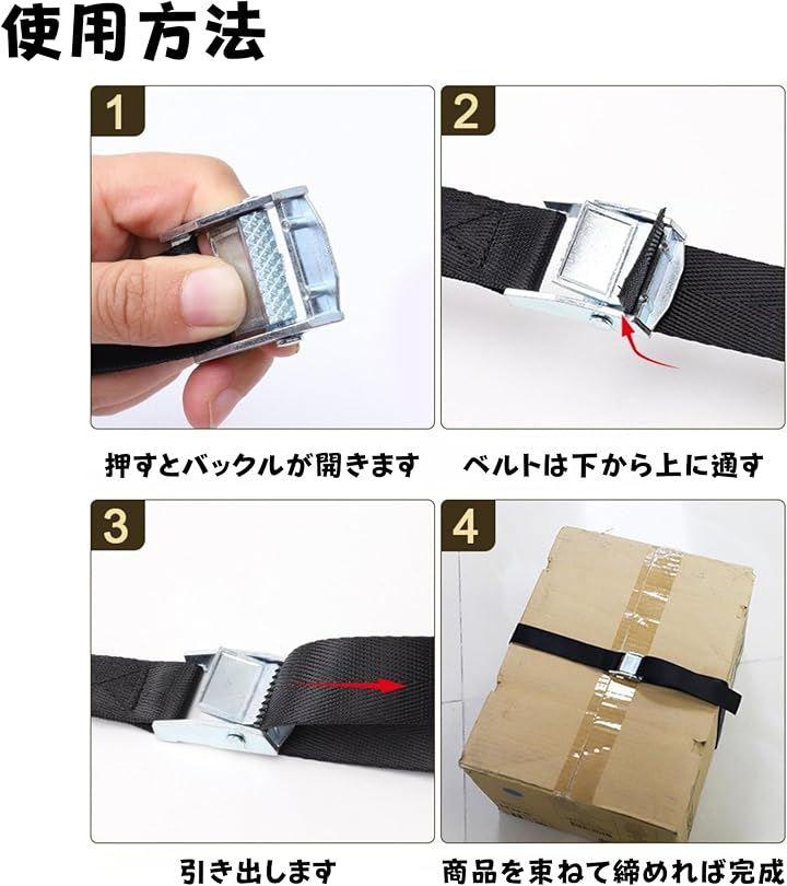 本製品は、トラック・軽バン・ルーフキャリアなどでの荷物固定に最適な荷締めベルトタイプです。