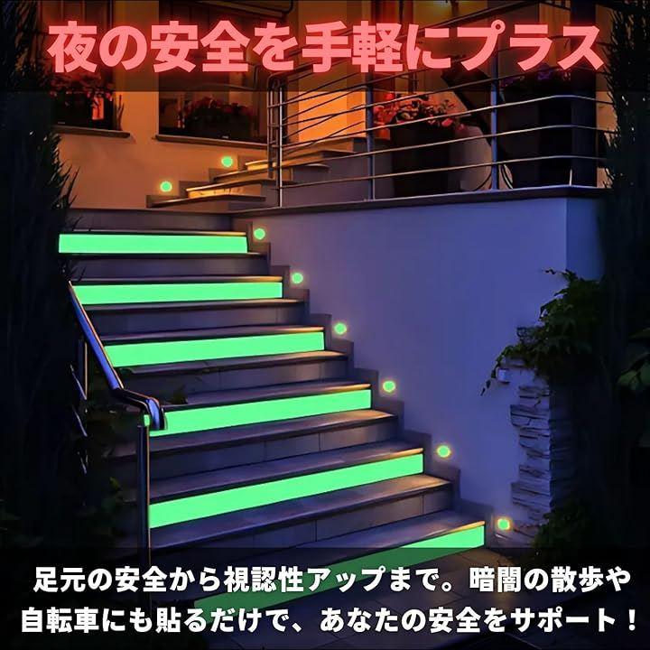 「光を吸収して暗闇で輝く。」 この蓄光テープは、太陽光や蛍光灯の光を吸収し、暗闇で高輝度で発光します。