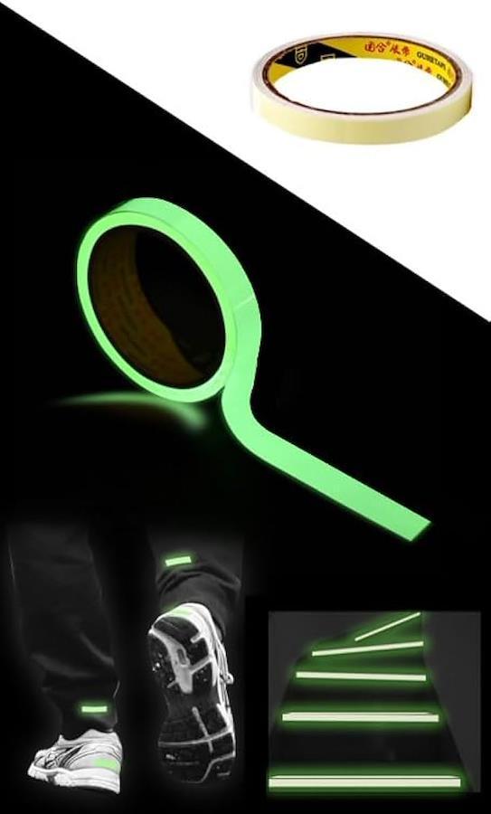 「光る。蓄光テープ」日中の光を吸収して発光。夜間の階段や照明スイッチに。
