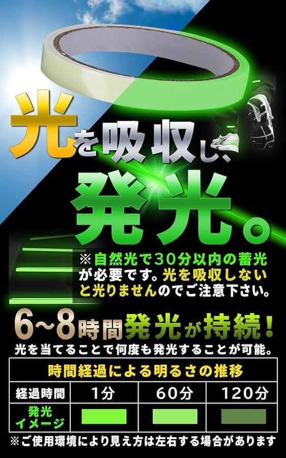 蓄光テープ1巻 夜光テープ 蛍光テープ 夜間 発光 高輝度 シール シート ハロウィン イベント