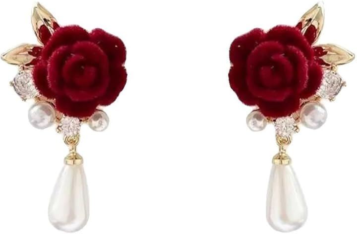 立体感のある薔薇モチーフに、艶やかなパールと輝くキュービックジルコニアを組み合わせた、存在感あふれるAREUMのピアス。