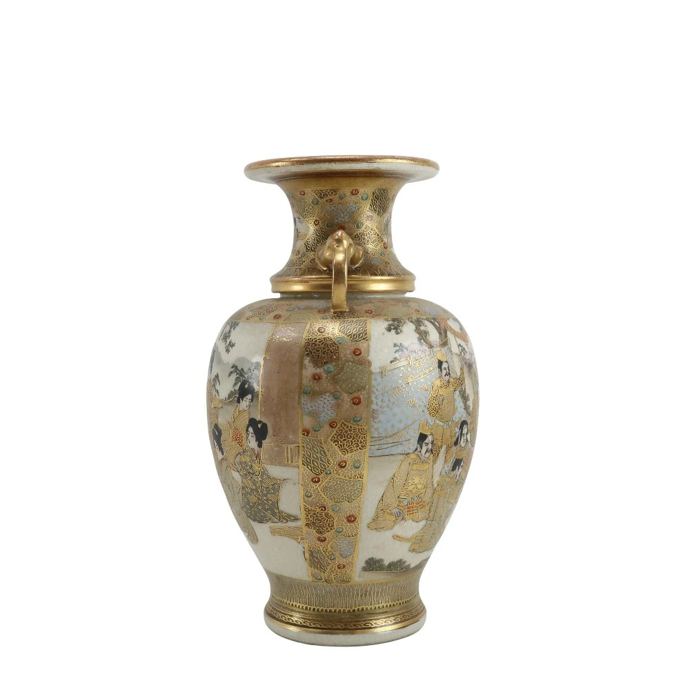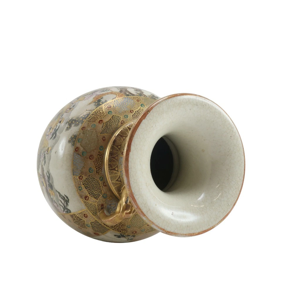 薩摩焼 金襴手武将美人図花生 骨董品 陶磁器 Satsuma ware gold brocade flower vase with a beautiful warrior design ユニセックス【中古】