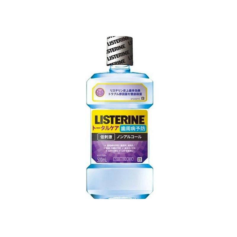 【薬用リステリン トータルケア歯周病予防 マウスウォッシュの商品詳細】●殺菌成分に加え、抗炎症成分(GK2)配合で歯周病予防を実現。歯周病予防から、口臭、ネバつき、虫歯、着色汚れ、口内の不快感まであらゆるお口のトラブルをケア。健康なお口に。●低刺激、ノンアルコール処方。辛さ・刺激が苦手な方にもおすすめ。●アイスミント味●【販売名】リステリン NC (歯周クリア)【使用方法】・適量を30秒ほど口に含み、ブラッシングしてください。・6歳以上~12歳未満の場合は約10ml(キャップ4分目)、12歳以上の場合は約20ml(キャップ8分目)、1日2回の使用をおすすめします。※歯周病とは、歯肉炎と歯周炎の総称です。【成分】湿潤剤:ソルビット液溶剤:プロピレングリコール矯味剤:キシリトール、サッカリンナトリウム、スクラロース溶解補助剤:ポリオキシエチレンポリオキシプロピレングリコール、ラウリン硫酸ナトリウム着香剤:香料(アイスミントタイプ)pH調整剤:安息香酸保存剤:安息香酸ナトリウム薬用成分:イソプロピルメチルフェノール、グリチルリチン酸ジカリウム着色剤:赤227、青1、緑3【注意事項】・内服液ではありません。飲まないでください。・ポリオキシエチレンポリオキシプロピレングリコール含有。使用中にじんましん、息苦しさなどの異常があらわれた場合には直ちに使用を中止し、医師又は薬剤師に相談する。特に、アレルギー体質の人や、薬などで発疹などの過敏症状を経験したことがある人は、十分注意して使用する。・本剤又は本剤の成分によりアレルギーを起こしたことがある人は使用しない。・飲み込んだり、発疹、かゆみ等の異常が現れた場合は使用を中止し、医師に相談する。・強い光や直射日光のあたる場所に長時間置かない。日光等の光の影響により色が変化する場合がありますが、品質には問題ありません。・乳幼児の手の届かないところに保管する。・推奨使用年齢:6歳以上(6歳未満の使用には適しません)【原産国】タイ【発売元、製造元、輸入元又は販売元】ジョンソン・エンド・ジョンソン商品に関するお電話でのお問合せは、下記までお願いいたします。健康関連用品:0120-101110 受付時間9:00-17:00(土・日・祝日を除く)(リステリン(R)、バンドエイド(R)、ニュートロジーナ(R)、アビーノ(R)、ジョンソン(R)ベビー、ジョンソン(R)ボディケアなど)リニューアルに伴い、パッケージ・内容等予告なく変更する場合がございます。予めご了承ください。ジョンソン・エンド・ジョンソン101-0065 東京都千代田区西神田3丁目5番2号
