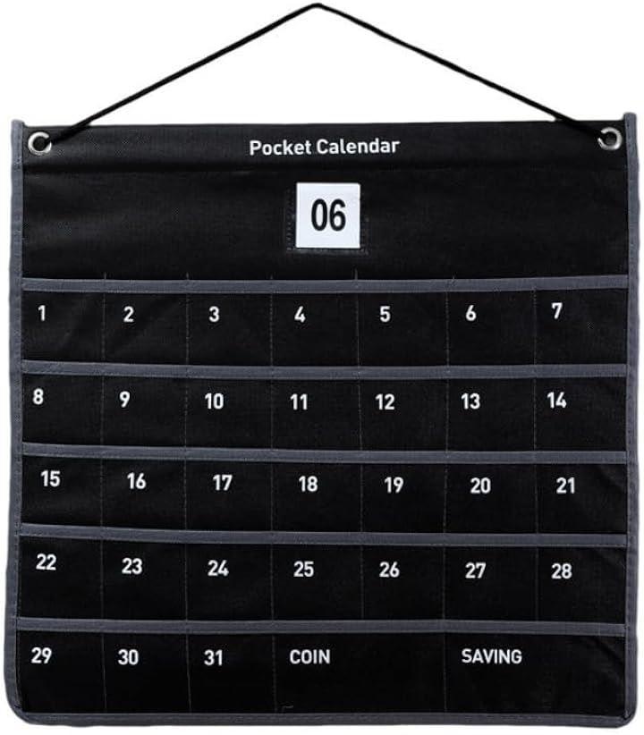 「ポケット付きのカレンダー」ポケットは手が入りやすいサイズで、出し入れが簡単です。
