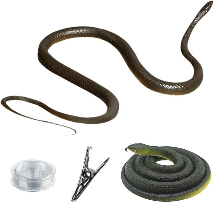 「簡単セッティングで誰でも楽しめる」 セット内容はダミー蛇、透明糸、クリップが含まれており、届いたその日からすぐに遊べます。