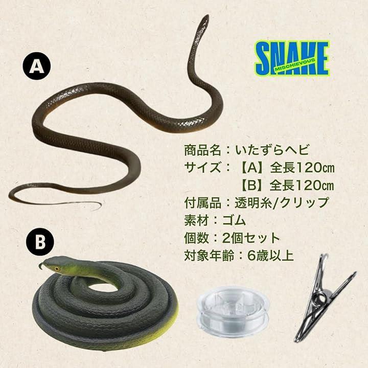 「セット内容」いたずらヘビx2種セット(全長約120cm)、透明糸、クリップ「商品仕様」素材:ゴム/対象年齢6歳以上