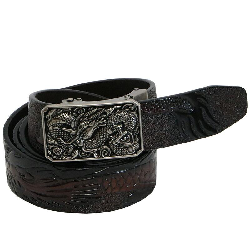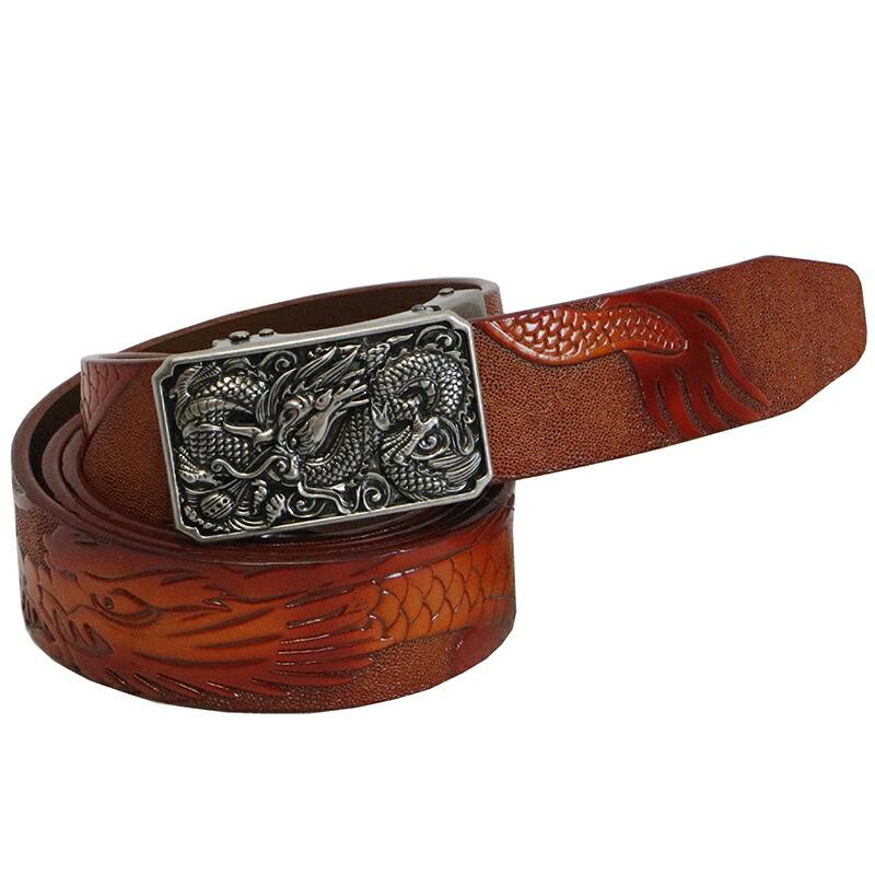 飛龍 柄 型押し レザー ベルト