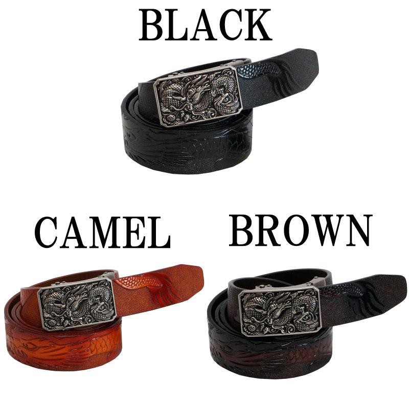 衣櫻 ころもざくら 飛龍 柄 型押し レザー ベルト ( SA-1635 ) BLACK Fサイズ